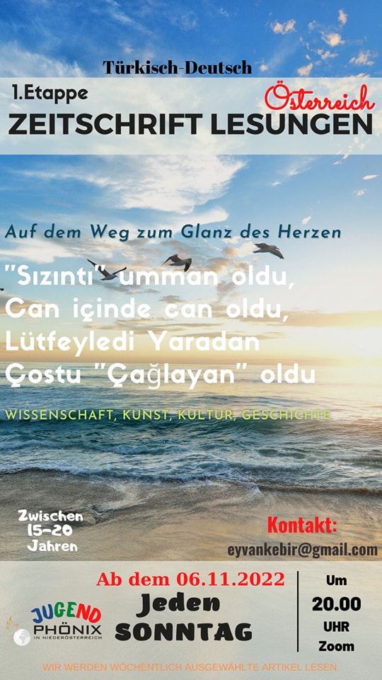 Unsere Zeitschriftlesungen beginnen online über Zoom. Die 1.Etappe beginnt am 6. November 2022 um 20.00 Uhr. Um an den Lesungen teilzunehmen oder mehr Infos zu erhalten, schreiben Sie eine Nachricht an die Kontakt E-Mail.